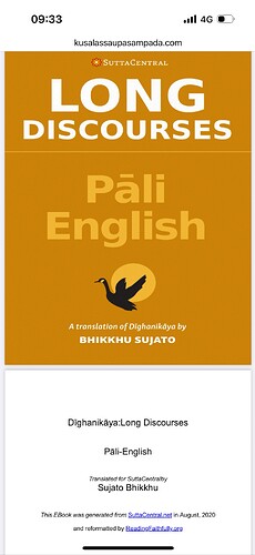 It says this ebook was generated from SuttaCentral.net in August, 2020, I typed in your website and found you guys.